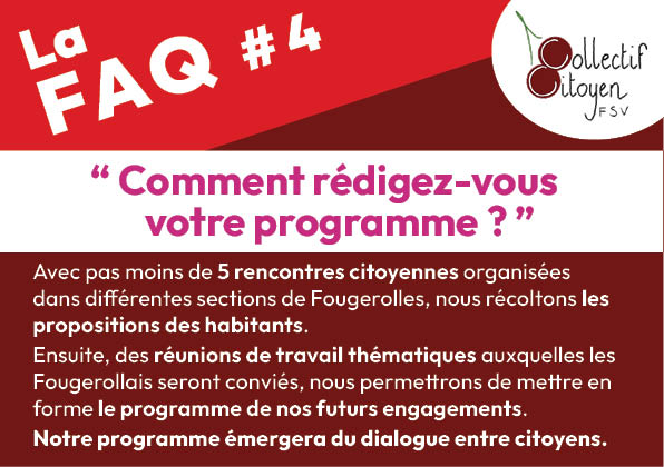 Nous sommes un groupe de personnes rassemblées en collectif pour établir une liste participative à l'élection municipale 2026. Le collectif offre les moyens aux citoyens de s'exprimer et prendre part aux décisions de la commune. Les membres se retrouvent autour d'une charte et d'un socle de valeurs communes.